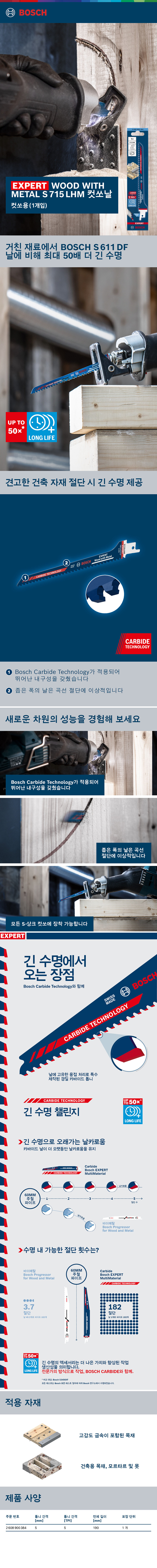 보쉬 EXPERT S 715 LHM 컷소날 1개입 2608900384 컷쏘날 목재 나무 모르타르 못