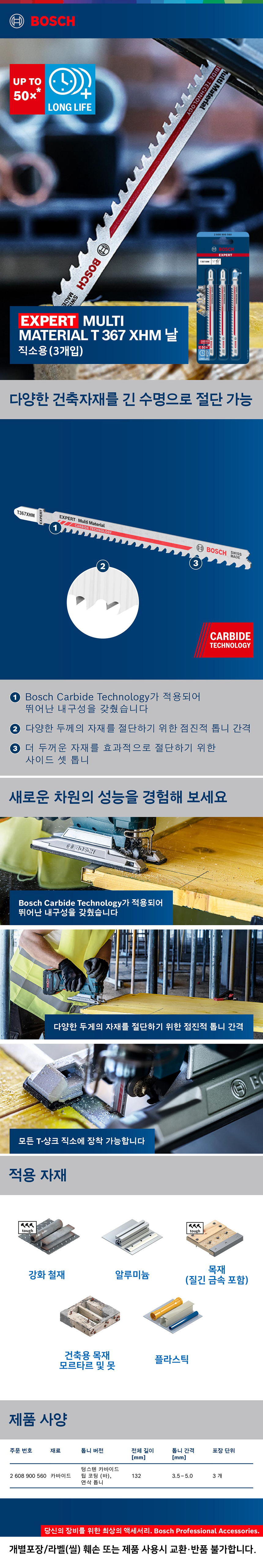보쉬 EXPERT 직소날 T 367 XHM 3개입 2608900560 직쏘날 금속 목재 알루미늄