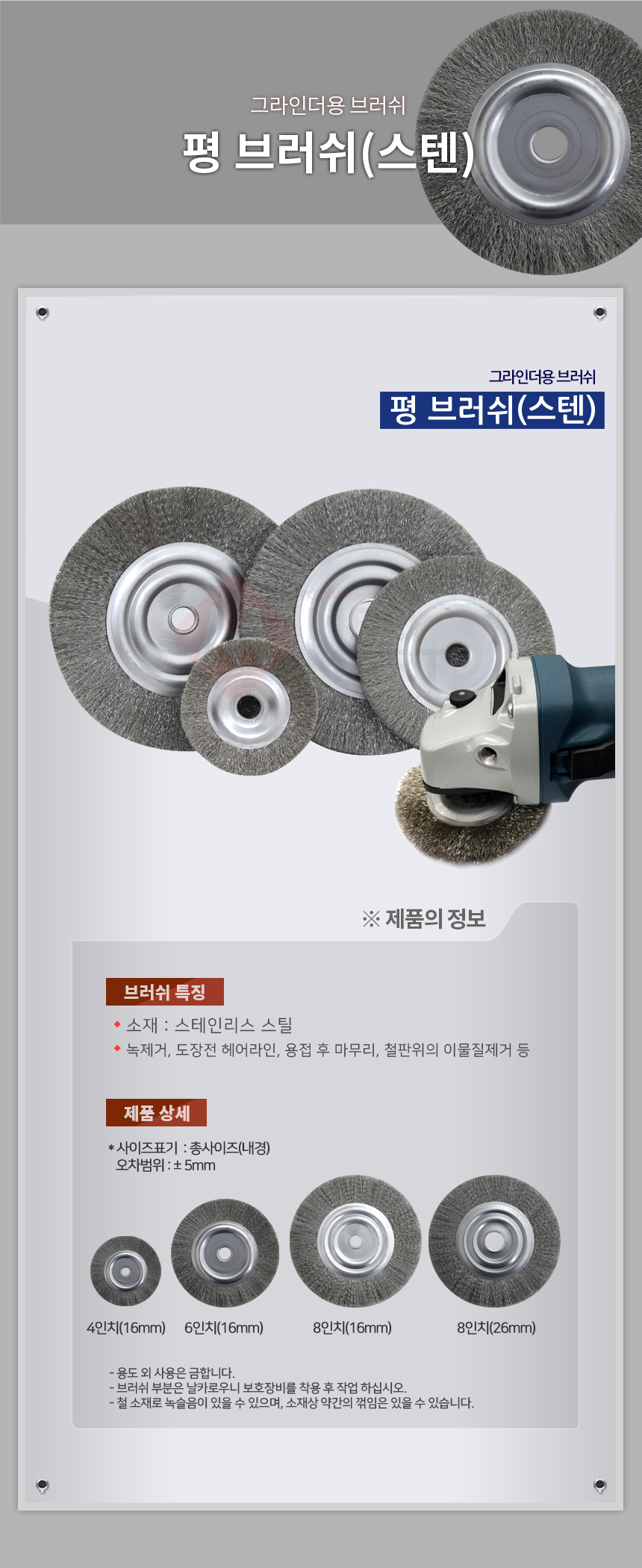 평 브러쉬 브러시 스텐 6인치 16mm 그라인더용 강판 녹 이물질 제거 용접 마무리