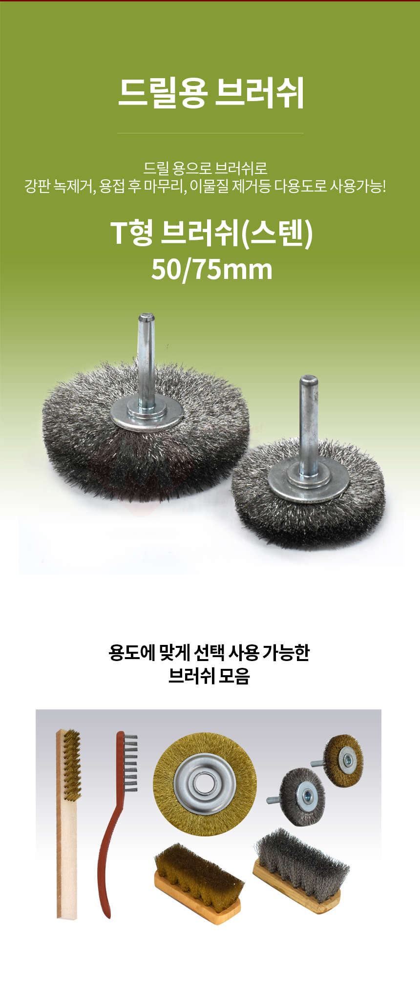 T형 스텐 브러쉬 브러시 75mm 드릴용 평브러쉬 강판 녹 이물질 제거 용접 마무리