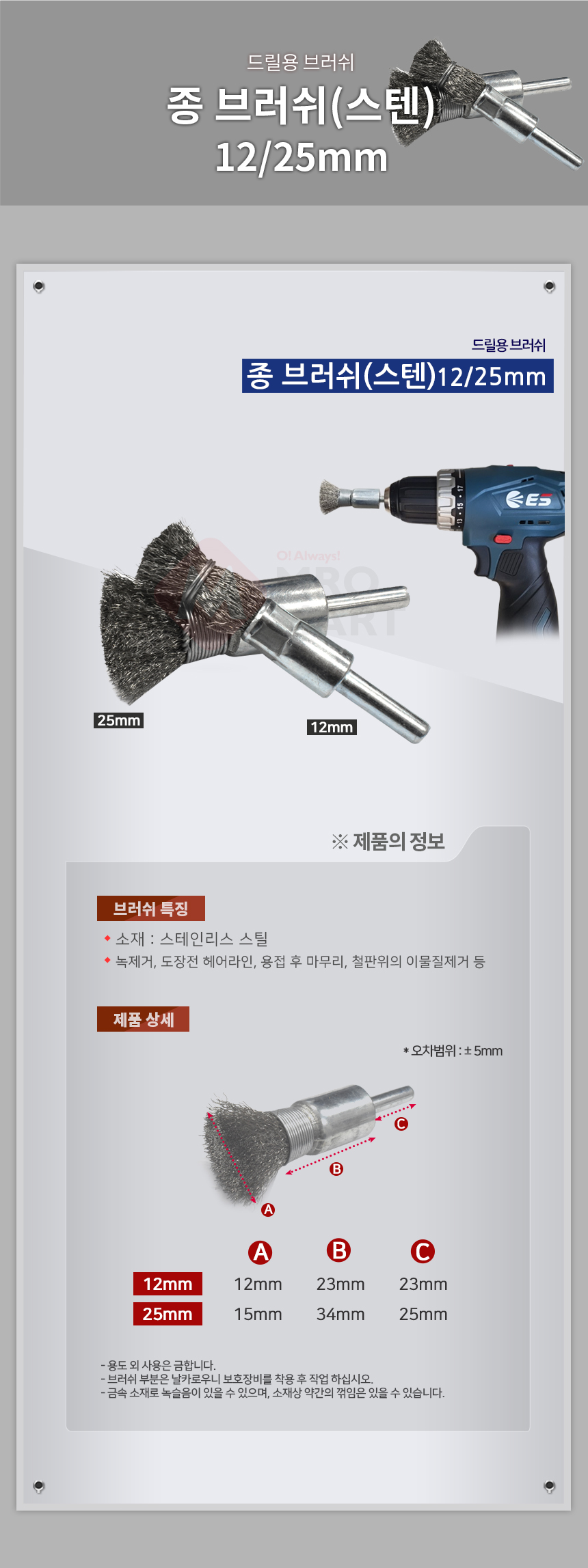 종 브러쉬 브러시 스텐 25mm 드릴용 베이비브러쉬 추브러쉬 녹제거 링형
