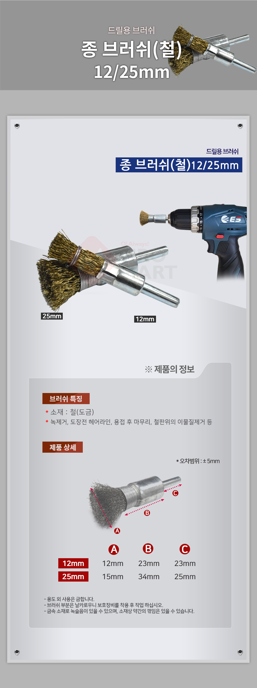 종 브러쉬 브러시 철 12mm 드릴용 베이비브러쉬 추브러쉬 녹제거 링형