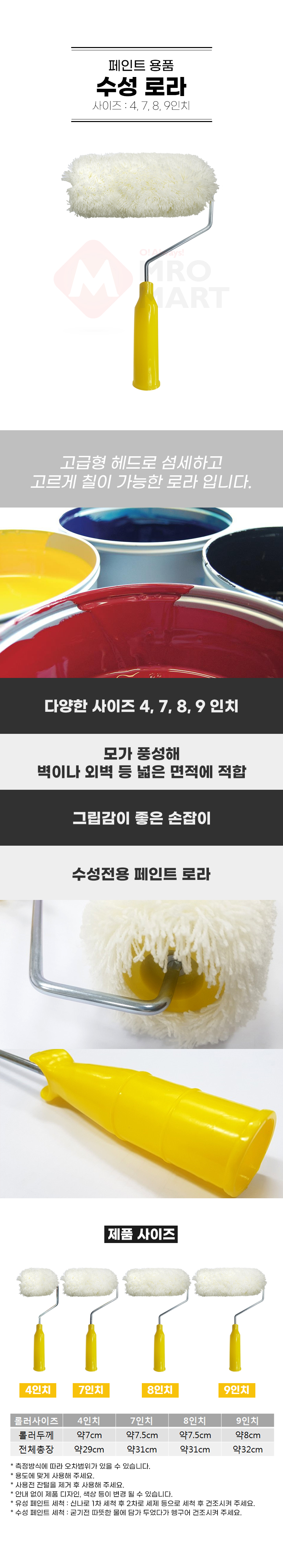 수성로라 7인치 페인트롤러 페인트붓 작업용 롤러 페인트 용품