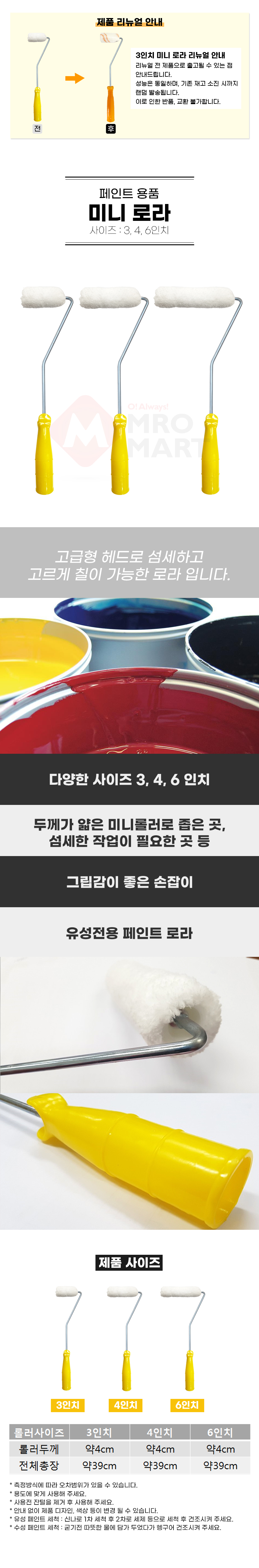 미니로라 6인치 페인트 롤러 페인트 붓 작업용 롤러 페인트 용품