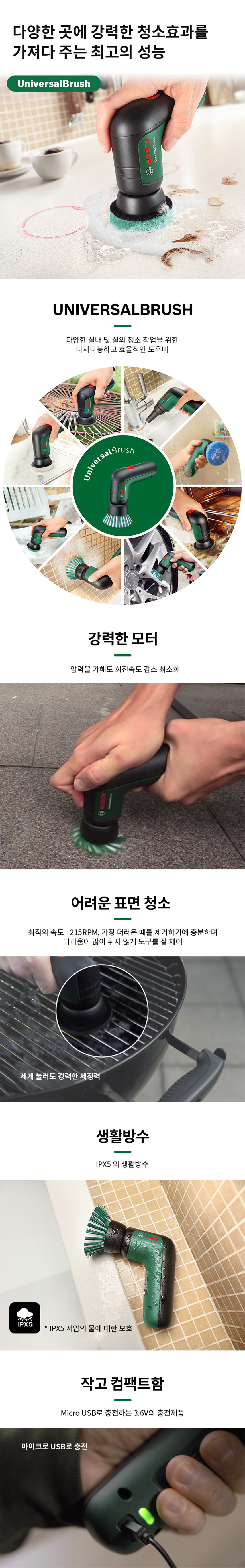 보쉬 Universal Brush 3.6V 충전 청소용 브러쉬 06033E0050 타일 자동차 휠 욕실 싱크대 청소