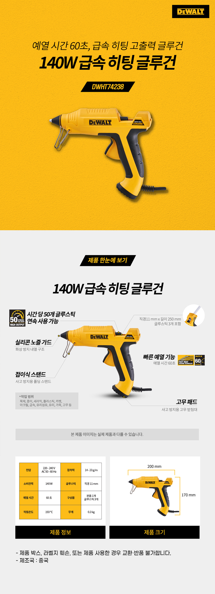 디월트 DWHT74238 140W 전기 급속 히팅 글루건 본드건 접착제 사무용 공예용