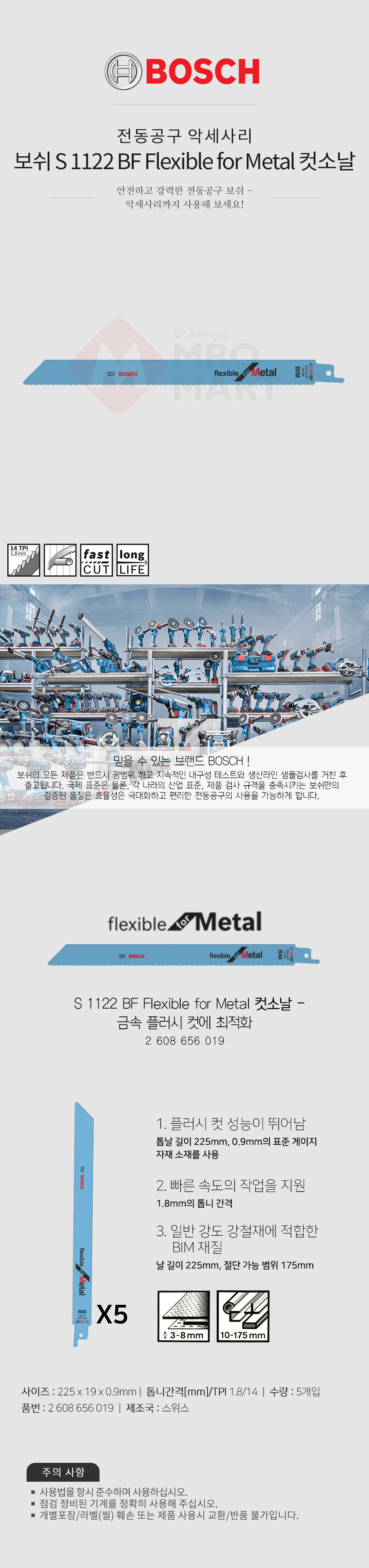 보쉬 S1122BF 철재 9인치 컷소날 5P 2608656019 유연한타입