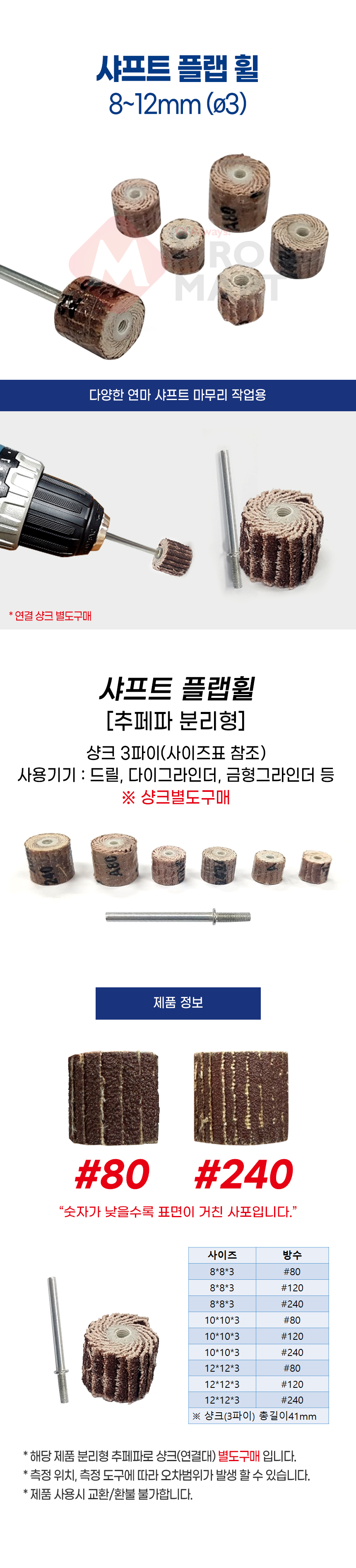 샤프트 플랩 휠 샌딩 샤프트휠 연삭 연마 샌드 페이퍼 원통형 사포 분리형 추 페파