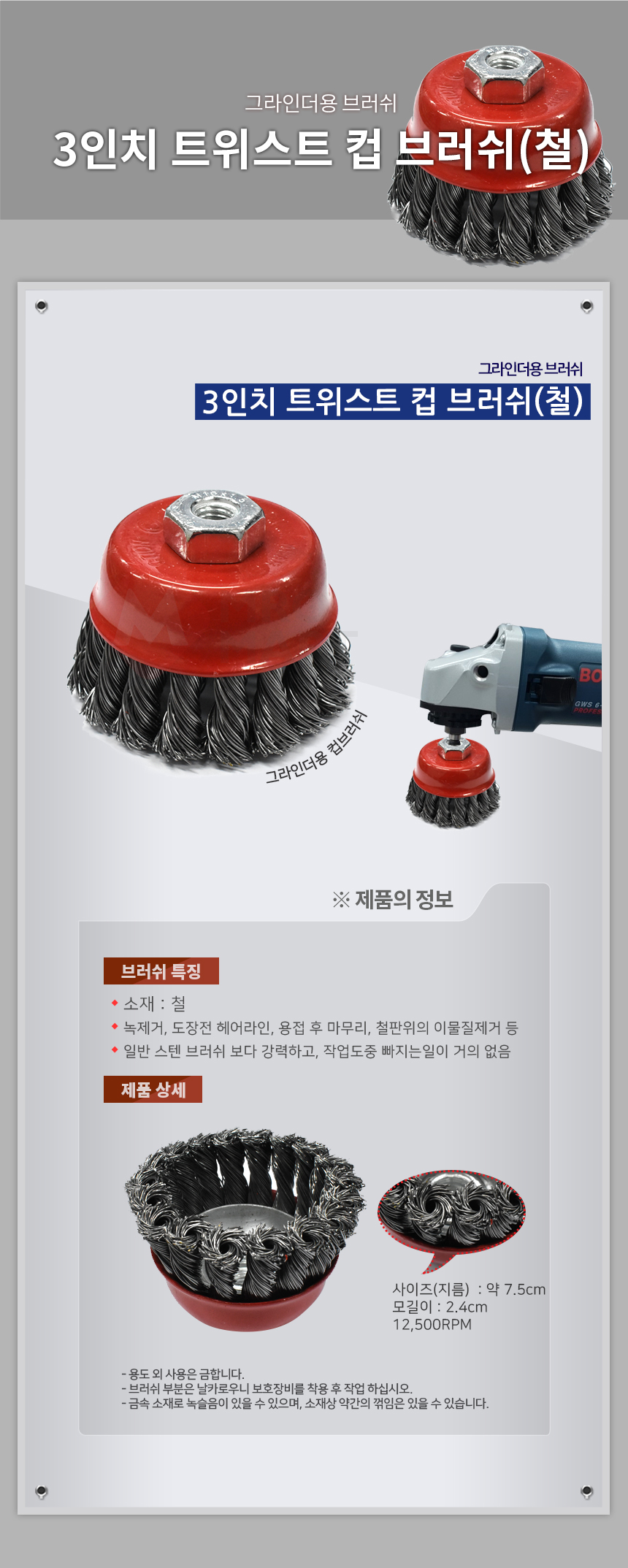 3인치 트위스트 컵 브러쉬 브러시 철 그라인더용 강판 녹 이물질 제거 용접 마무리