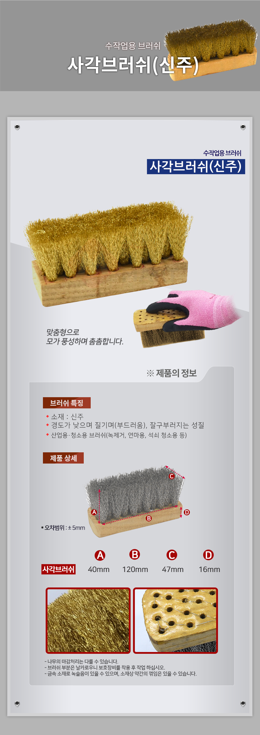 사각브러쉬(신주) 청소솔 스텐브러쉬 불판세척 와이어브러쉬 녹제거