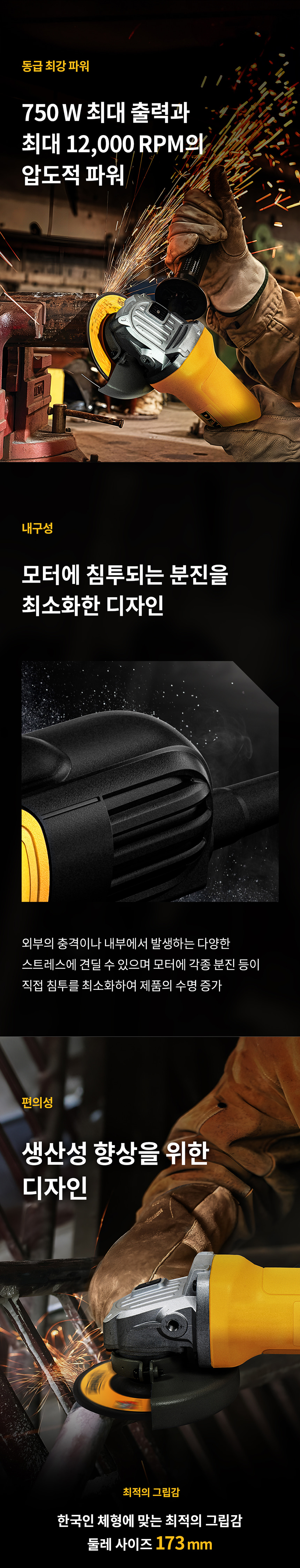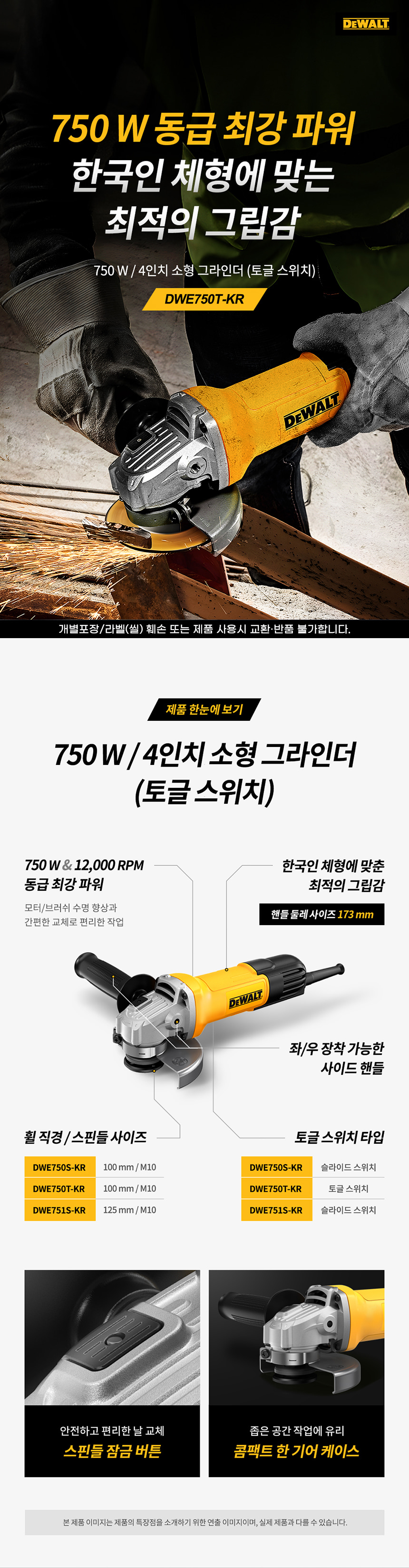디월트 750W 유선 4인치 소형 그라인더 DWE750T 후면 토글 스위치