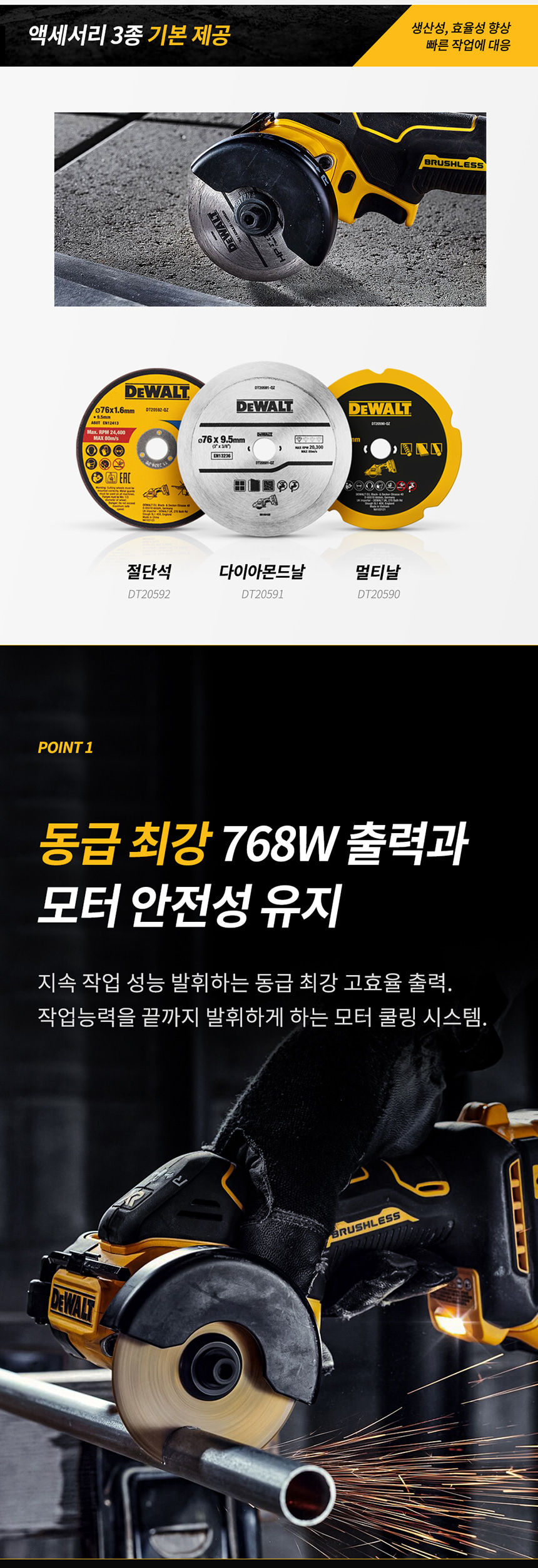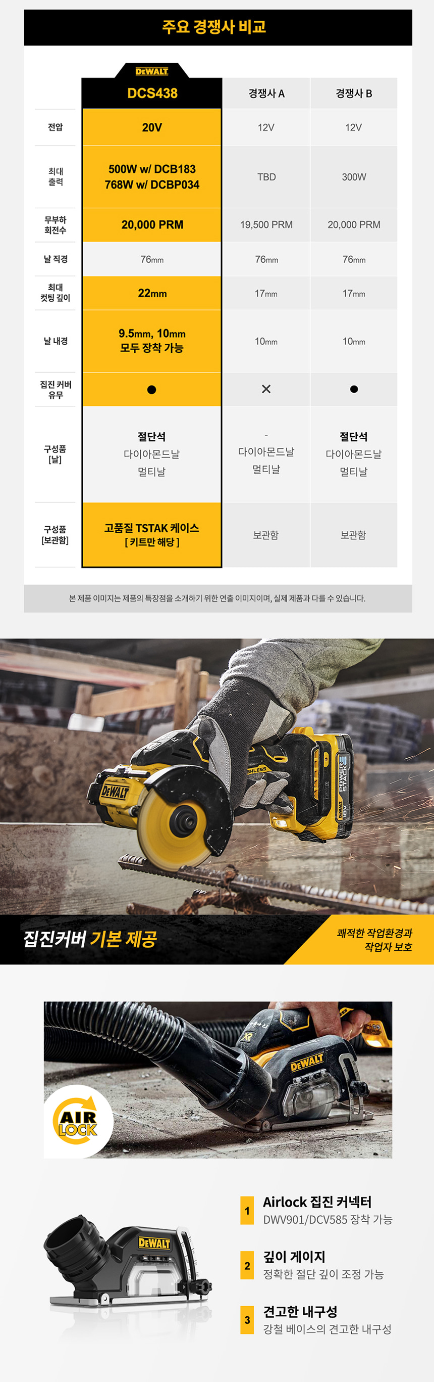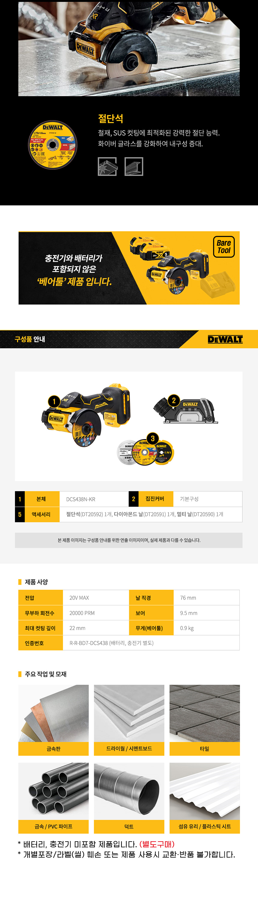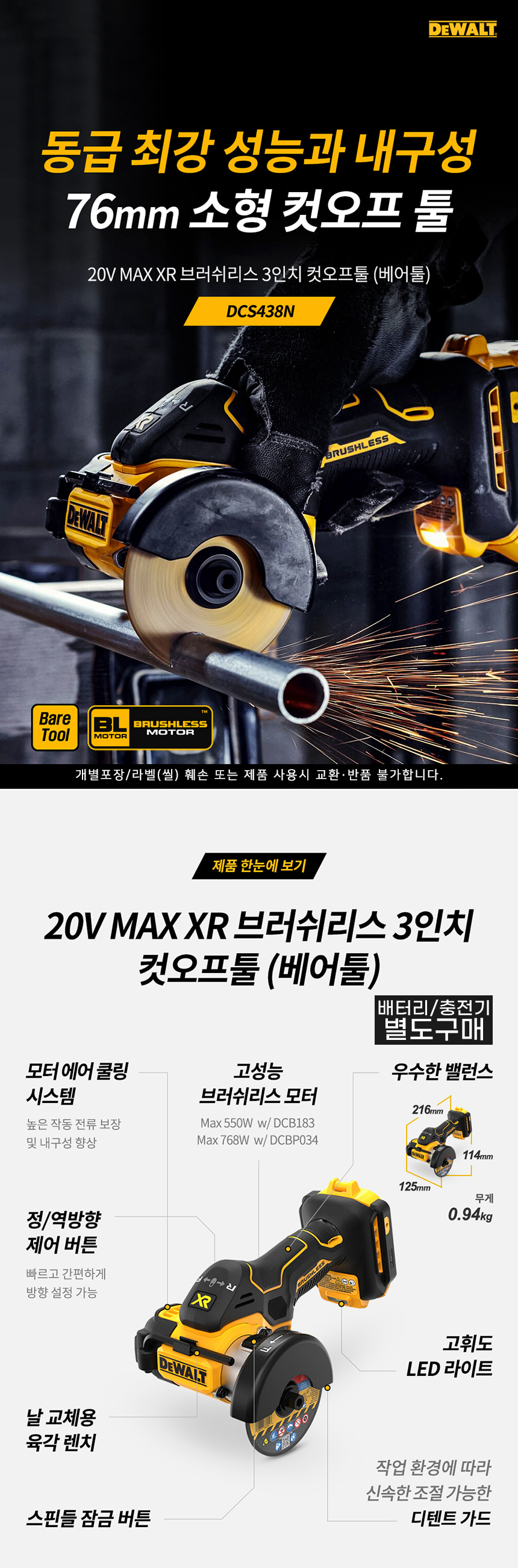 디월트 20V MAX XR 브러쉬리스 3인치 충전 컷오프툴 베어툴 DCS438N 그라인더 절단 컷팅