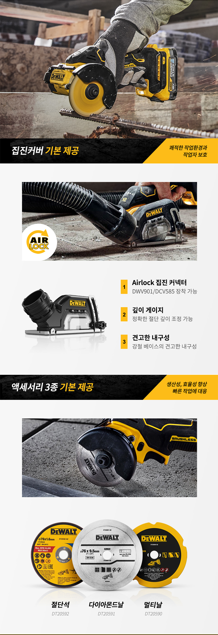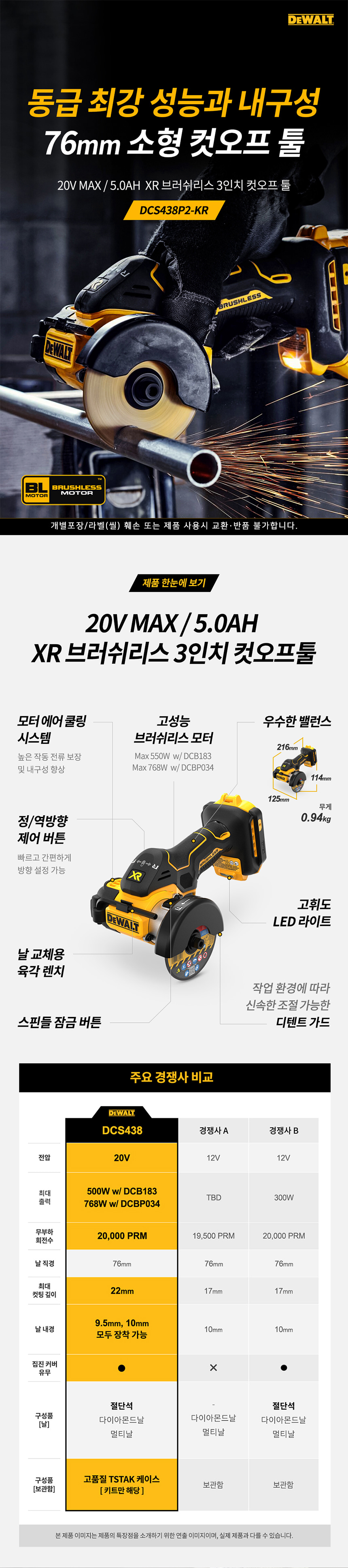 디월트 20V MAX 5.0Ah XR 브러쉬리스 3인치 충전 컷오프툴 세트 DCS438P2 그라인더 절단 컷팅