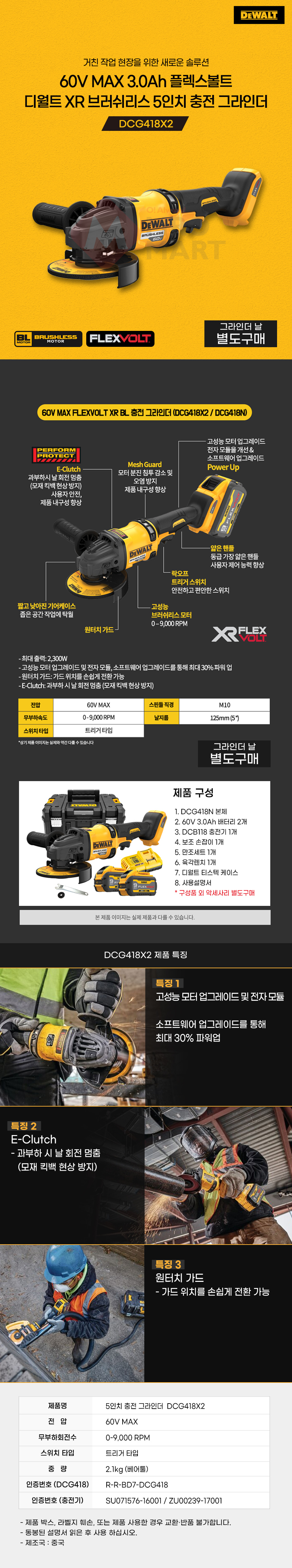 디월트 DCG418X2 충전 그라인더 5인치 세트 절단기 브러쉬리스 60V