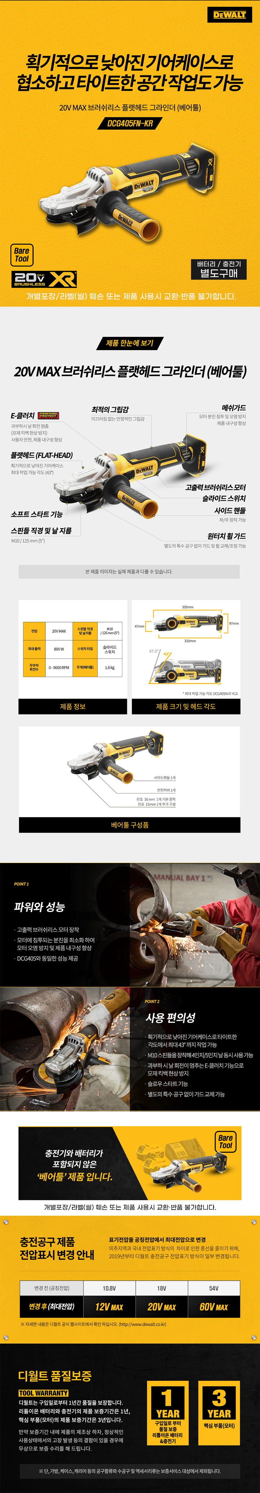 디월트 DCG405FN 충전 브러쉬리스 플렛헤드 그라인더 베어툴 20V 18V