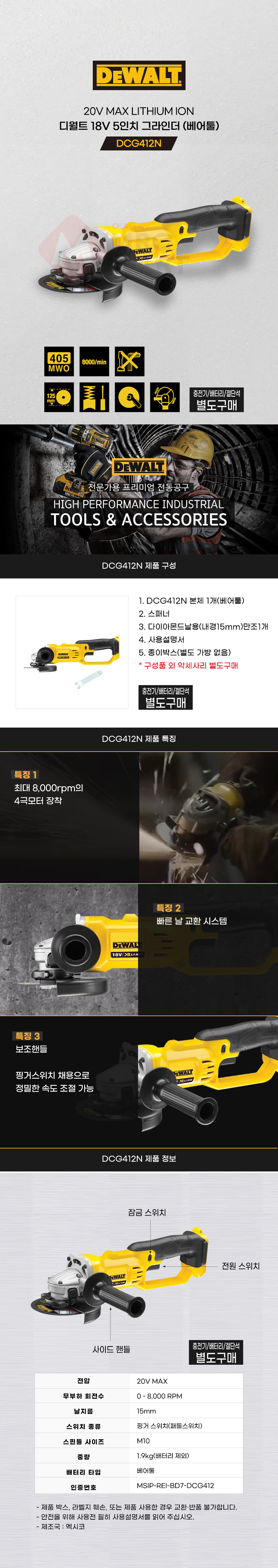 디월트 18V 5인치 충전 그라인더 베어툴 DCG412N