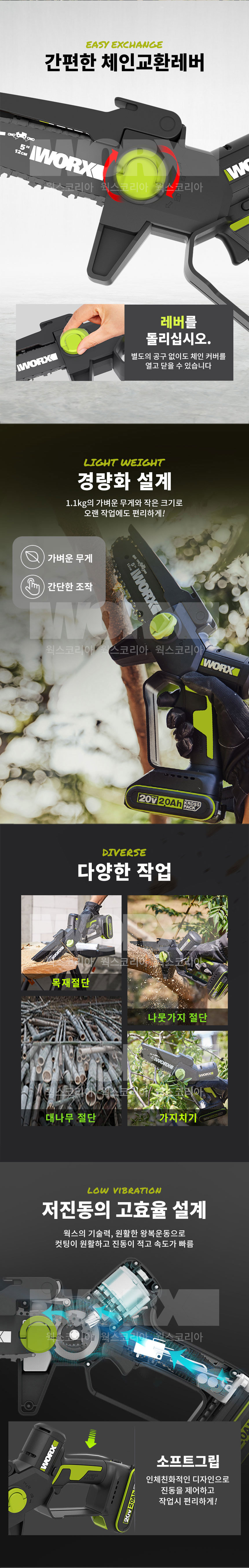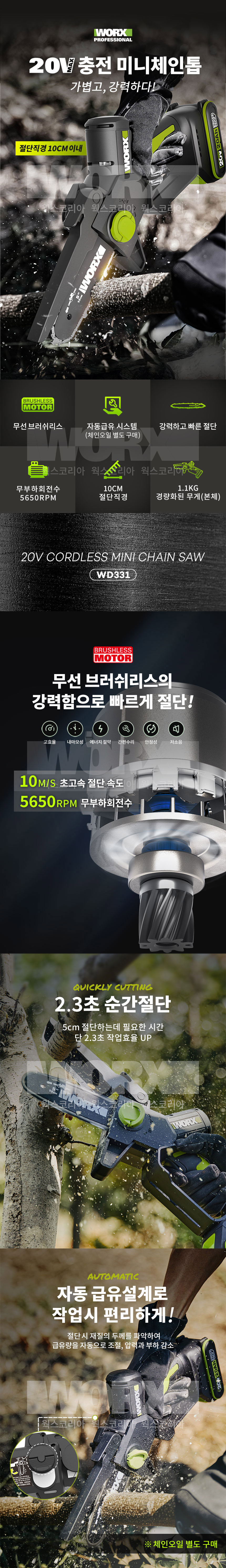 웍스 WD331 충전 20V 전동공구 미니 체인톱