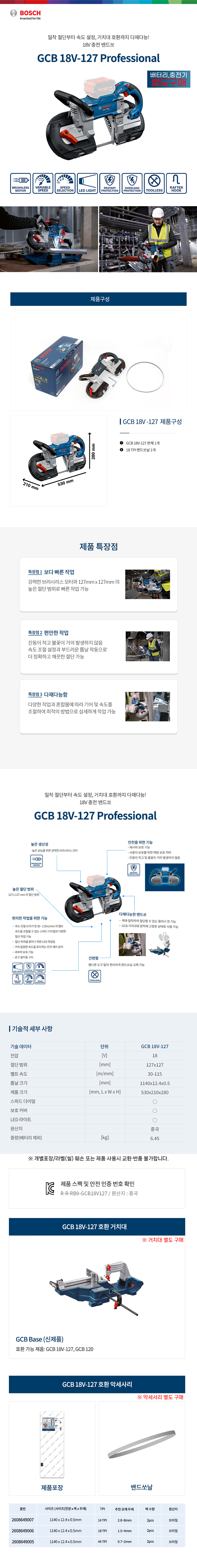 보쉬 GCB 18V-127 충전 밴드쏘 베어툴 06012B70B0 줄톱 금속 절단 전동 톱 컷팅기