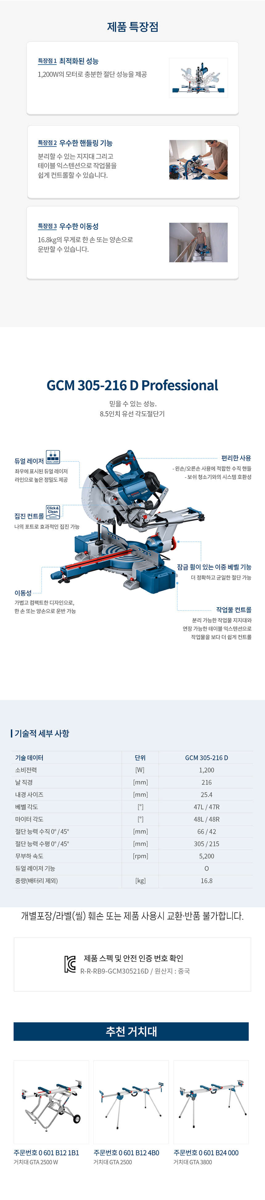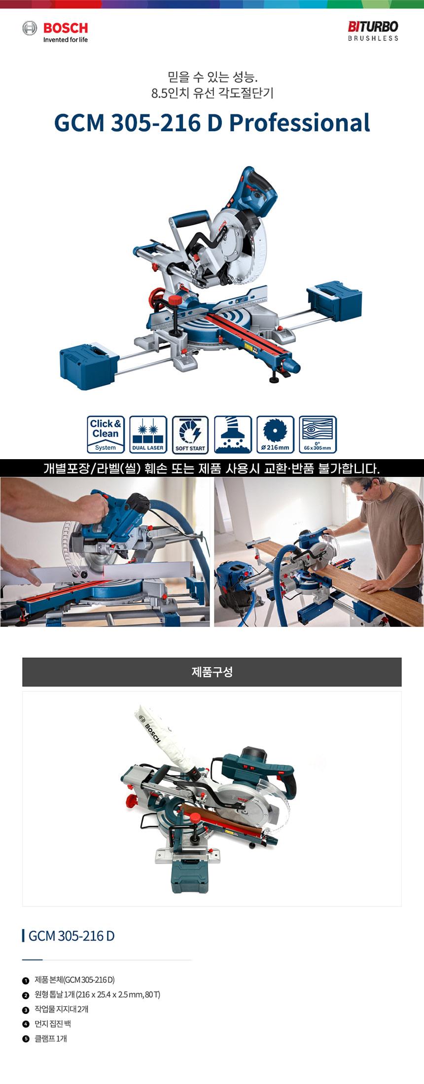 보쉬 1200W 8.5인치 GCM 305-216 D 유선 글라이딩 각도 절단기 0601B490B0 컷팅기 절단기