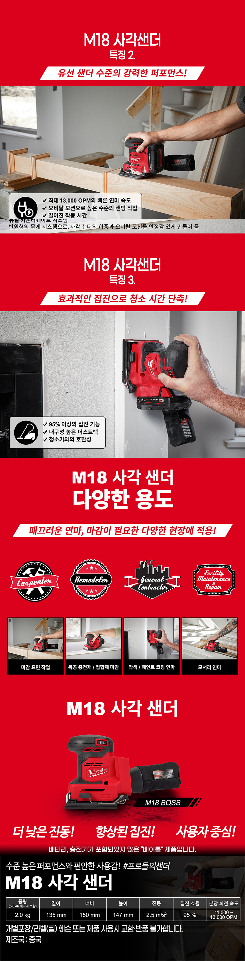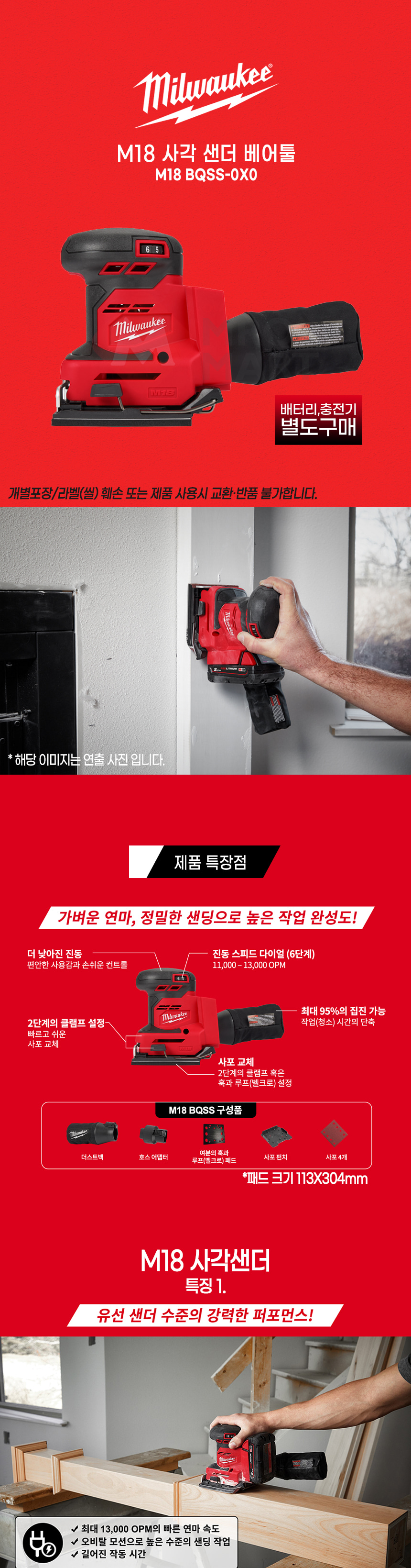 밀워키 18V 사각 샌더 샌더기 베어툴 M18 BQSS-0X0 페파 사포