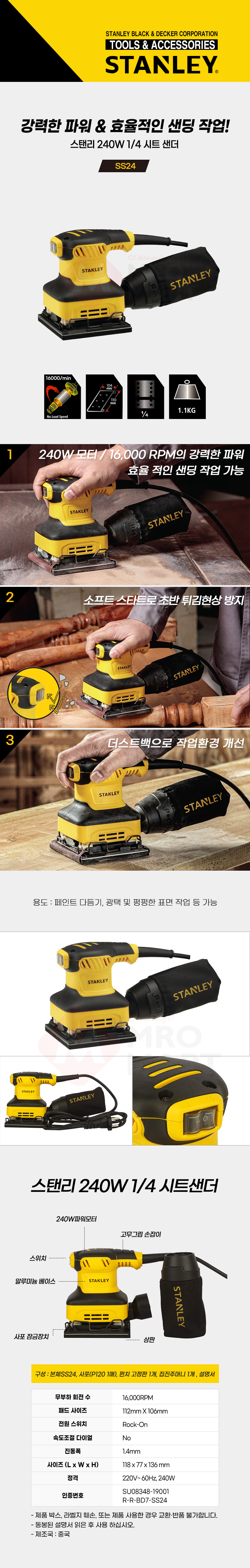 스탠리 240W 유선 1/4 시트 사각 샌더 샌딩기 SS24