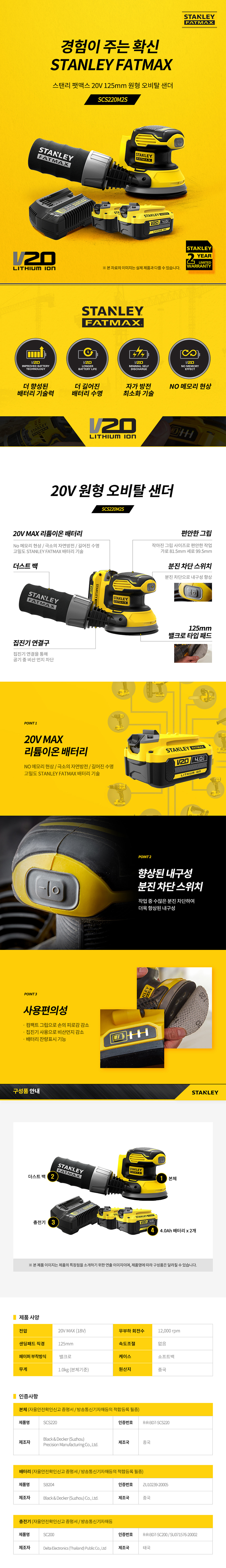 스탠리 20V 충전 오비탈 원형샌더 125mm SCS220M2S