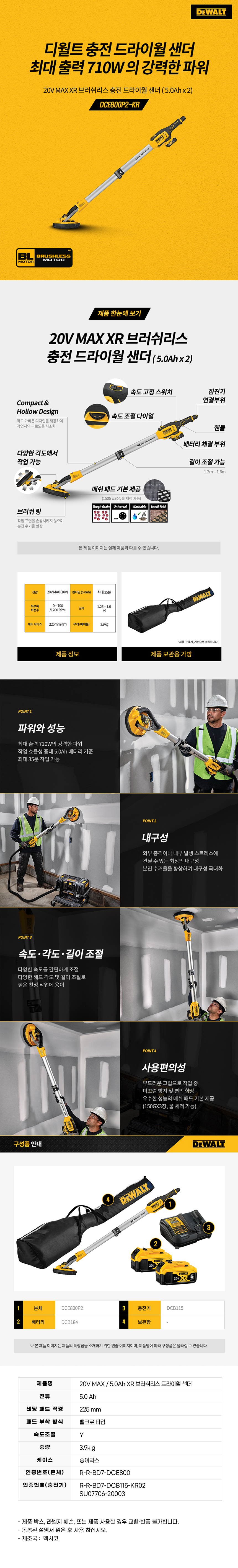 디월트 20V MAX 5.0Ah XR 브러쉬리스 드라이월 샌더 DCE800P2