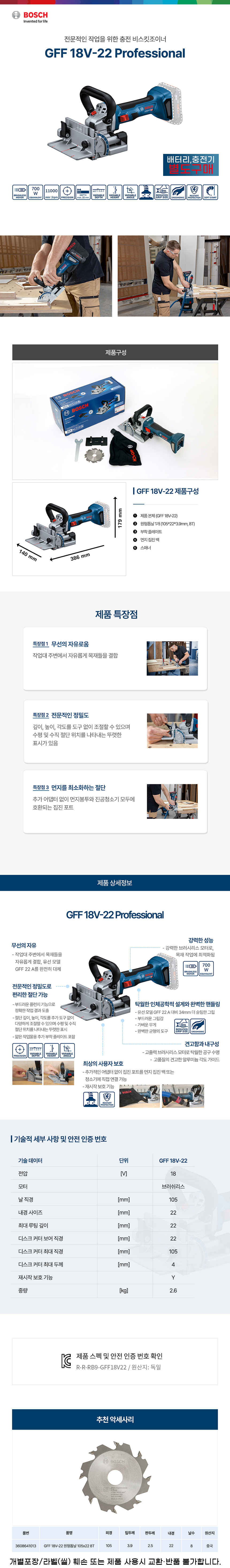 보쉬 GFF 18V-22 베어툴 비스킷 조이너 06016201B0 목재 가공 목공 공구