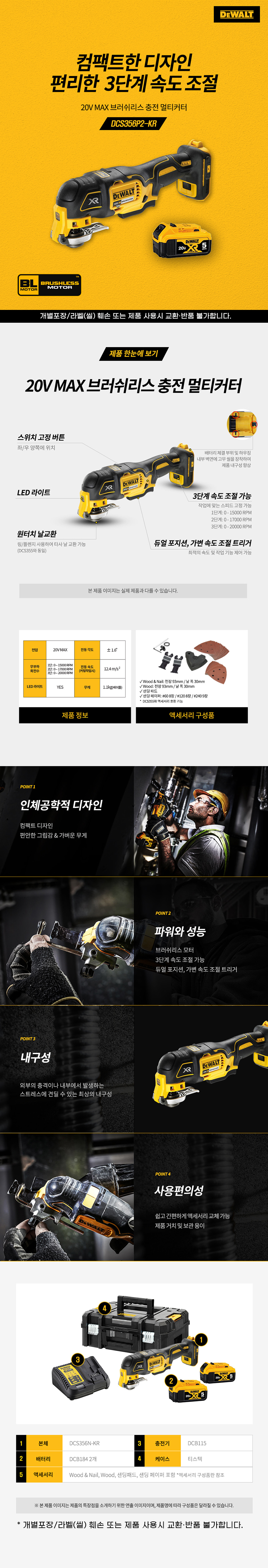 디월트 20V MAX 5.0Ah 충전 브러쉬리스 멀티 커터 DCS356P2 배터리 세트 절단 커터기
