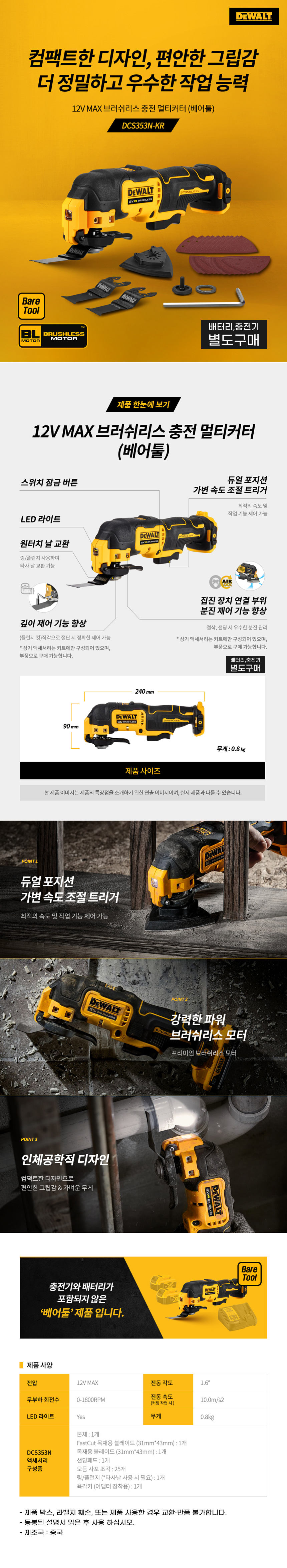 디월트 DCS353N 브러쉬리스 충전 멀티커터 만능컷터 12V 베어툴