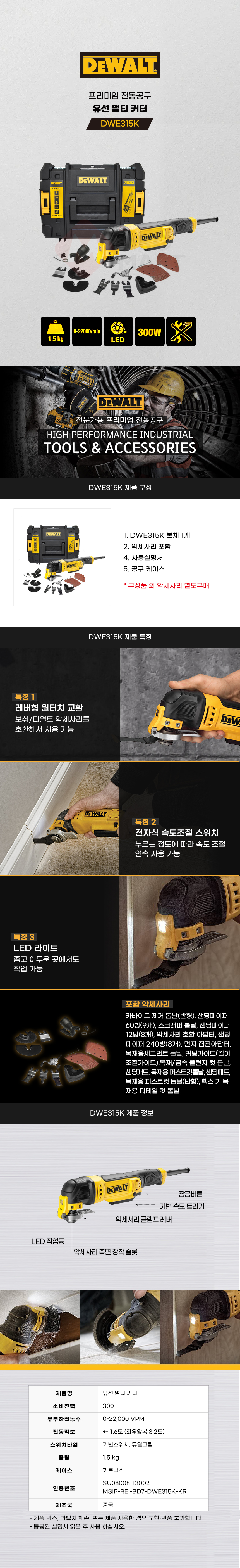 디월트 유선 멀티 커터 DWE315K 전기 만능 컷터