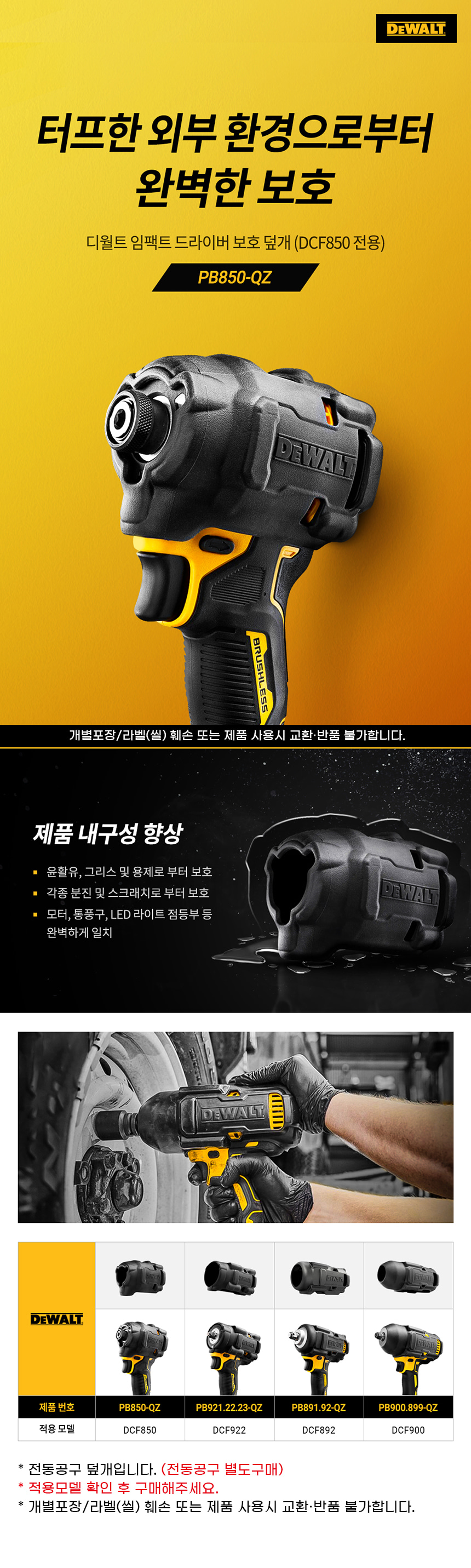 디월트 임팩트 드라이버 보호 덮개 DCF850 전용 PB850