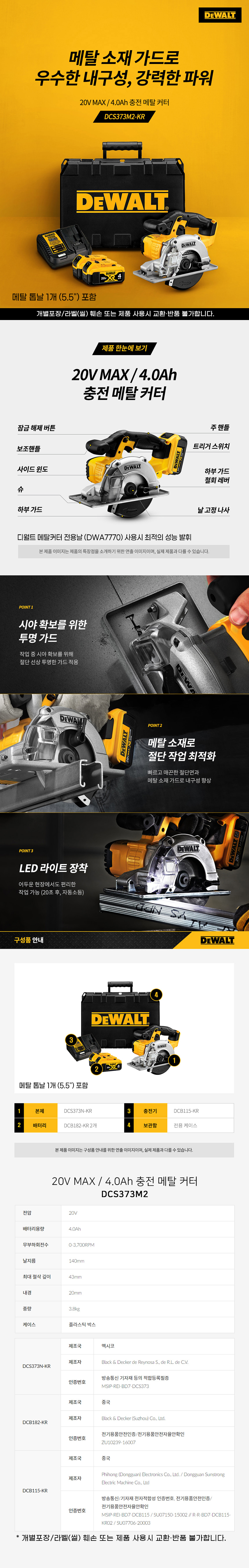 디월트 20V MAX 충전 메탈 커터 DCS373M2 원형톱 컷팅 톱 절단 목재 철재