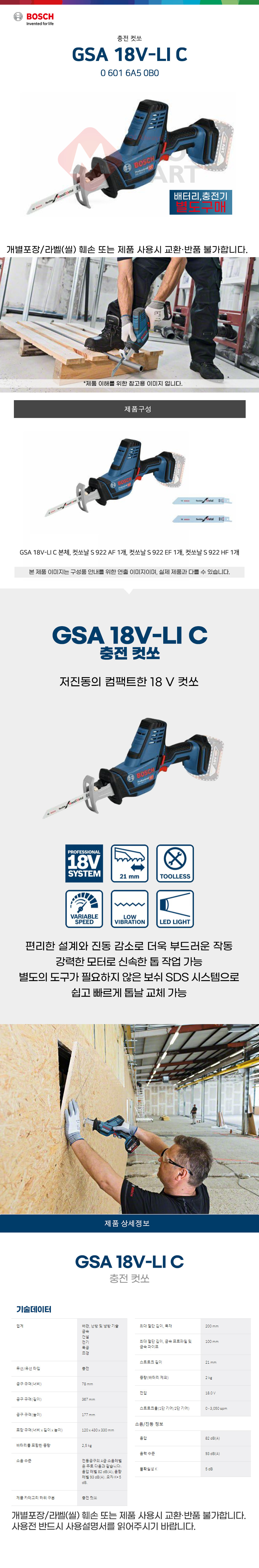 보쉬 GSA 18V-LI C 충전 컷쏘 베어툴 06016A50B0 컷소 컷소기 톱 절단 목재 금속