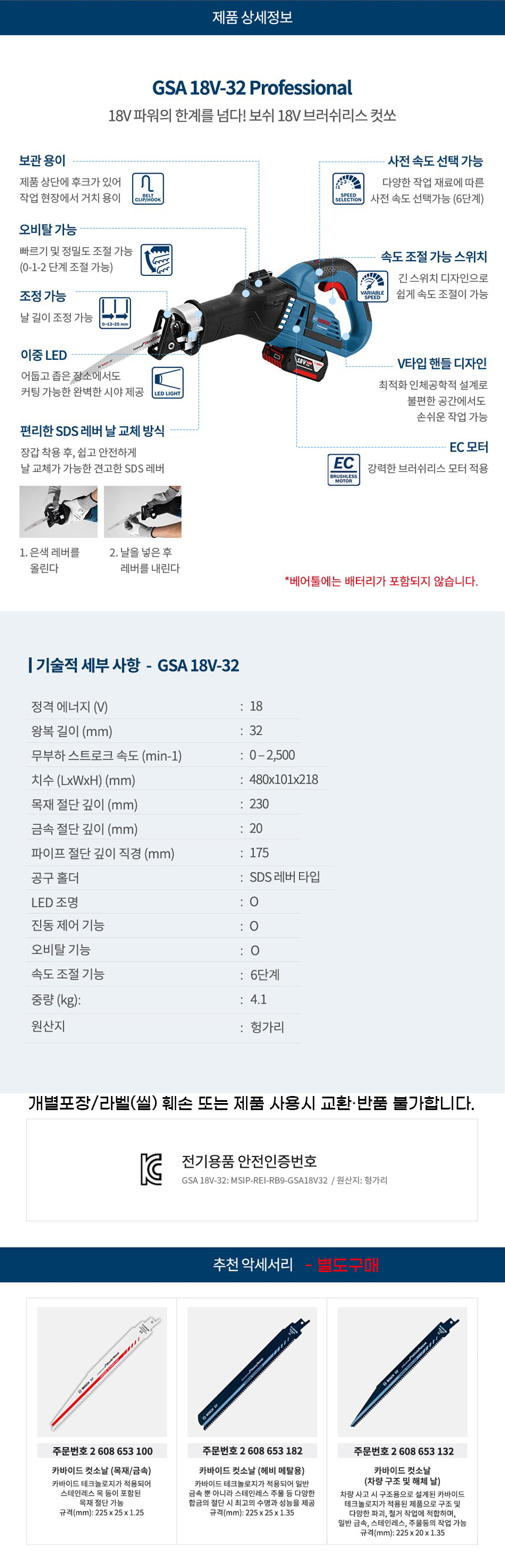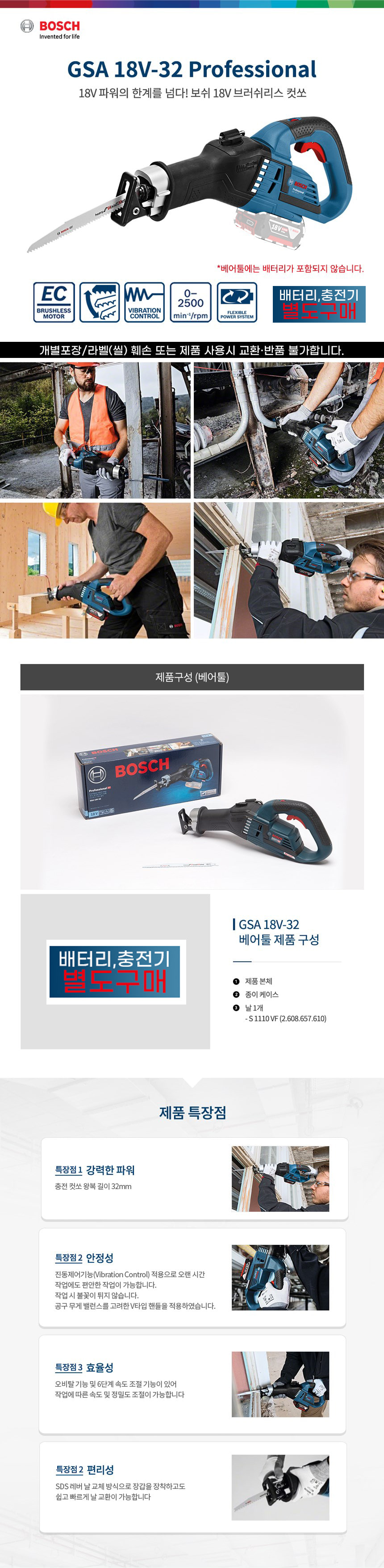 보쉬 GSA 18V-32 충전 컷쏘 베어툴 06016A81B8 컷소 컷소기 톱 절단 목재 금속