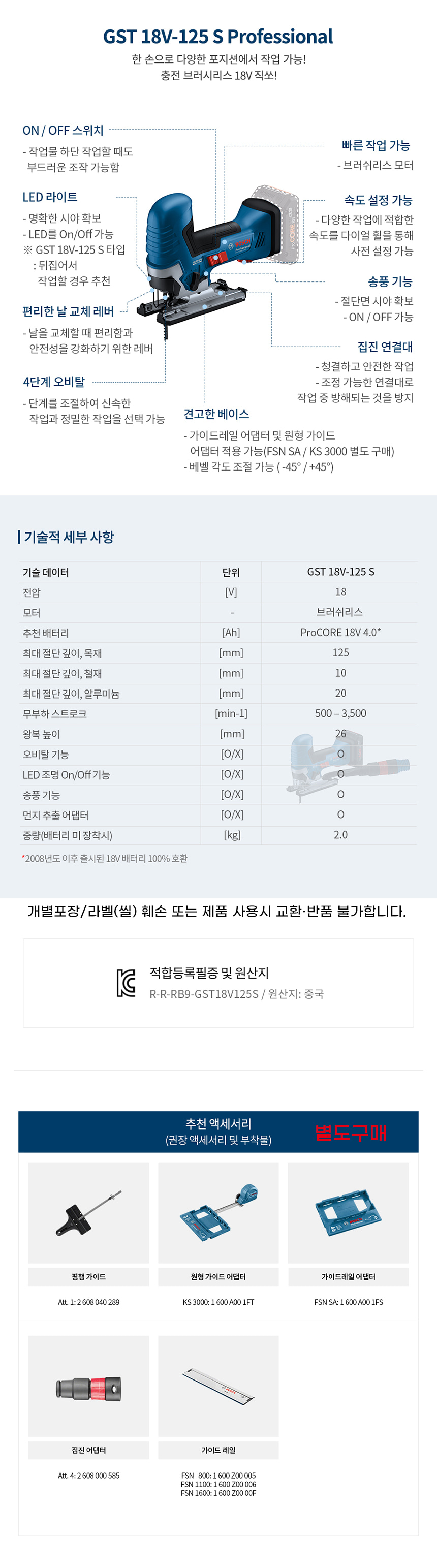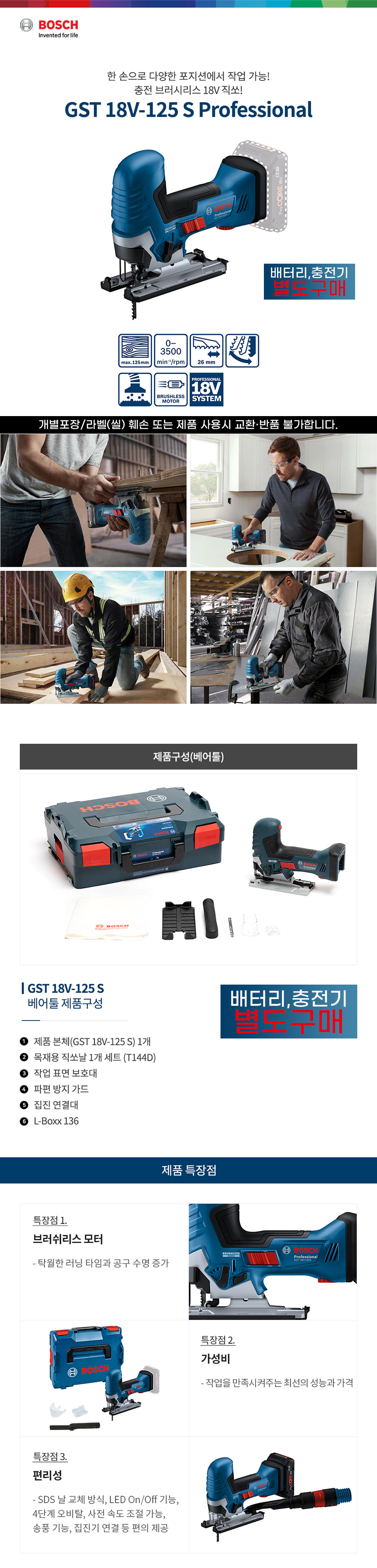 보쉬 GST 18V-125S 충전 직쏘 베어툴 06015B20B0 L-Boxx 직소 직소기 톱 절단 목재 철재