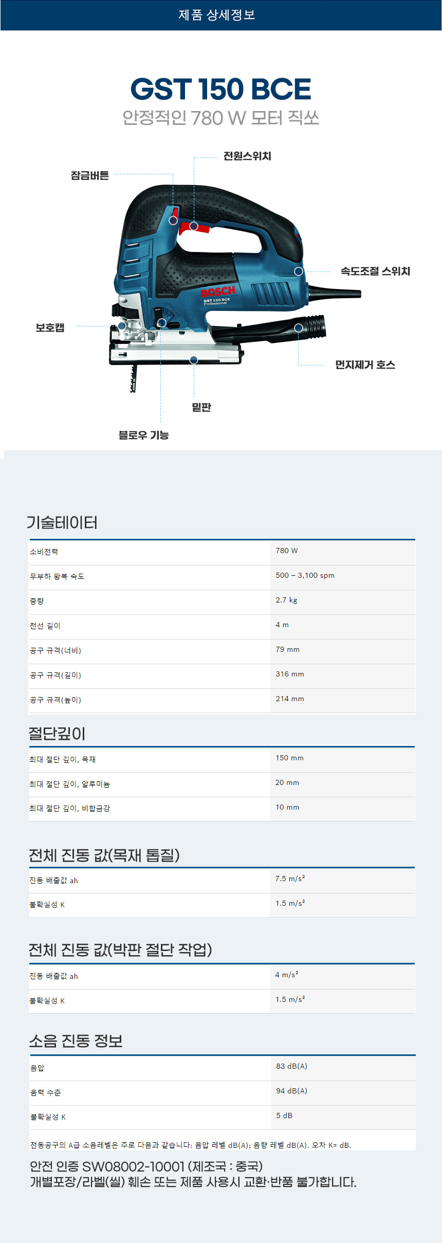 보쉬 GST150BCE 유선 직쏘 06015130B0 직소 속도조절 목재 금속 절단기 톱 목공 지그톱