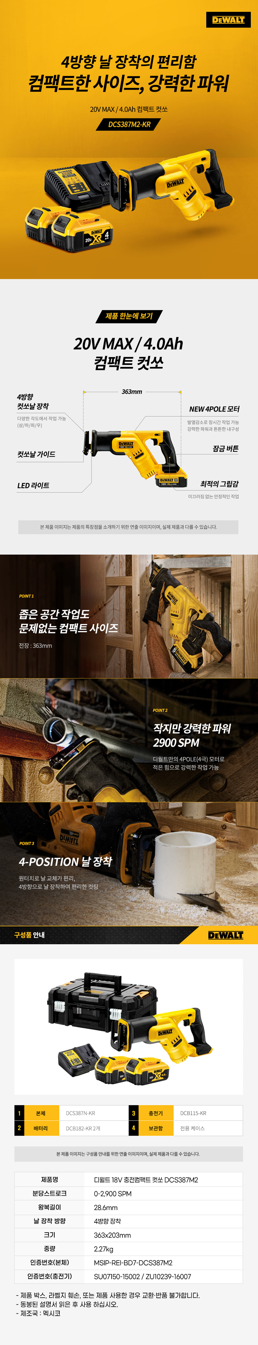 디월트 DCS387M2 충전 컴팩트 컷쏘 미니 전기톱 18V 4.0Ah