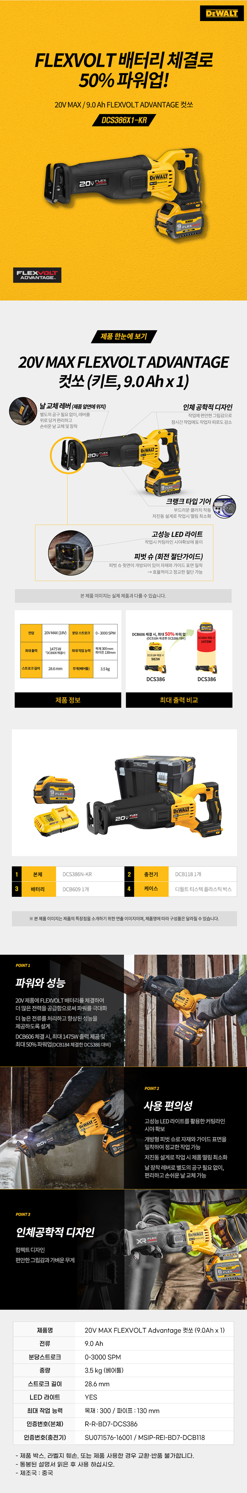 디월트 DCS386X1 충전 플렉스볼트 컷쏘 절단 20V 9.0Ah