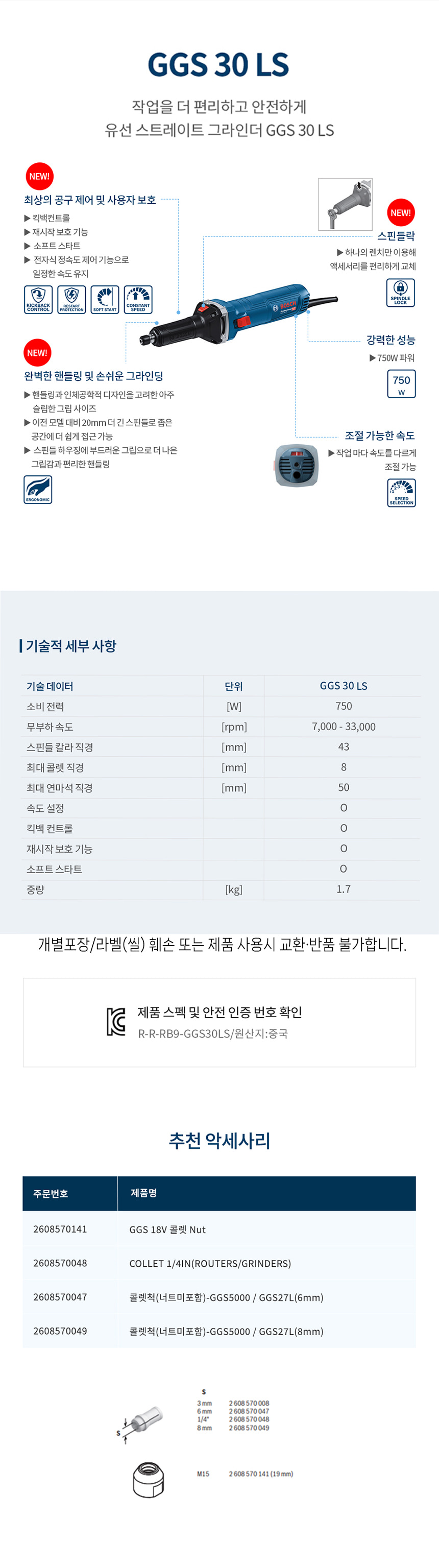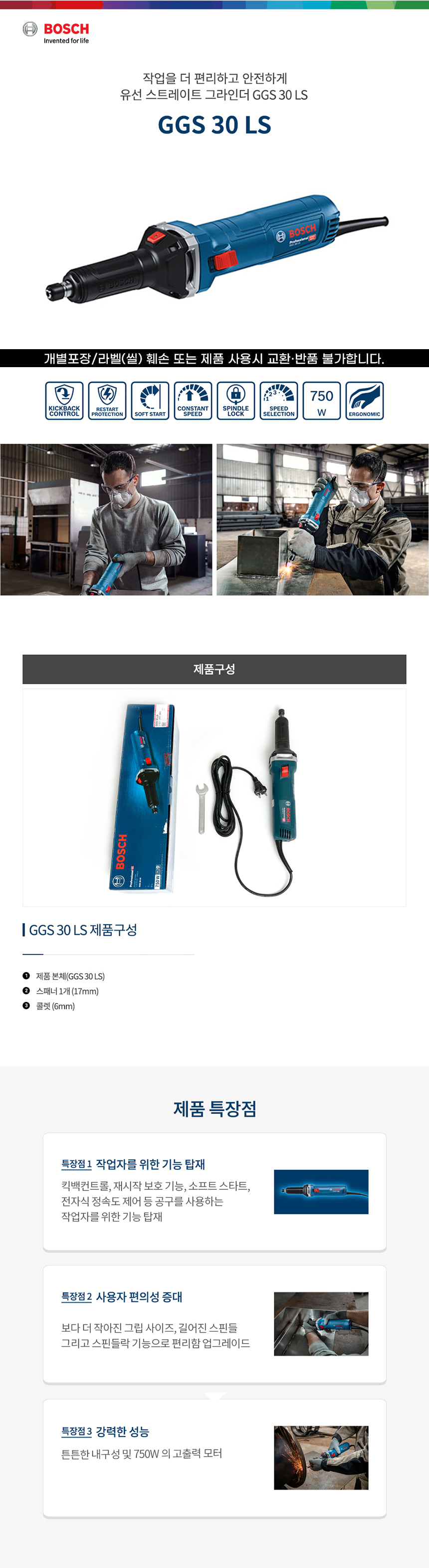 보쉬 GGS 30 LS 유선 전기 스트레이트 그라인더 06012B50B0 다이 직선 연마 절단