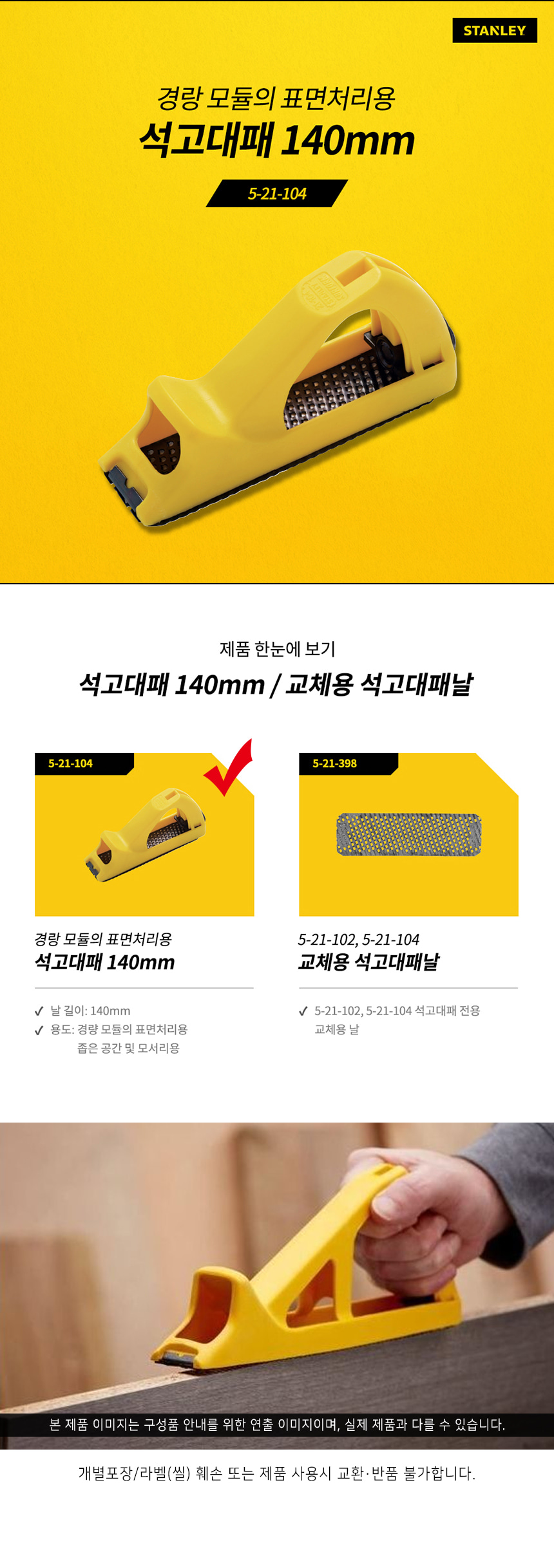 스탠리 5-21-104 석고 대패 140mm 경량형 표면 모서리 손대패 수공구
