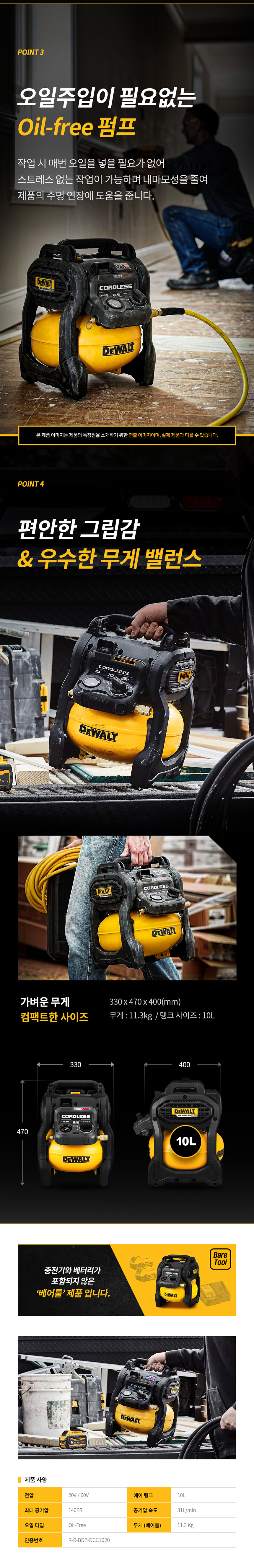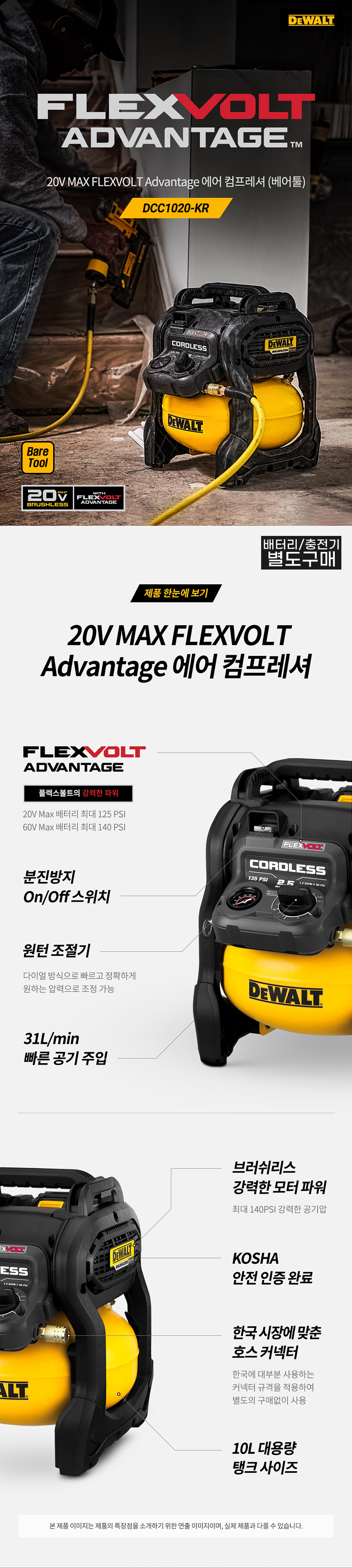 디월트 DCC1020N 충전 20V 플렉스볼트 에어 컴프레셔 베어툴 충전기 배터리 미포함