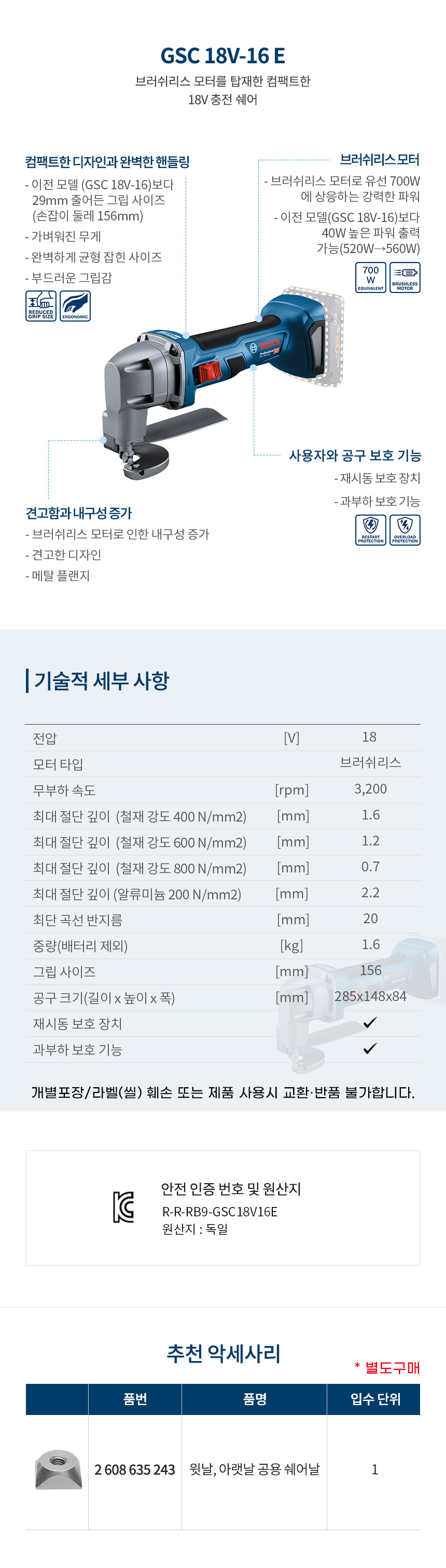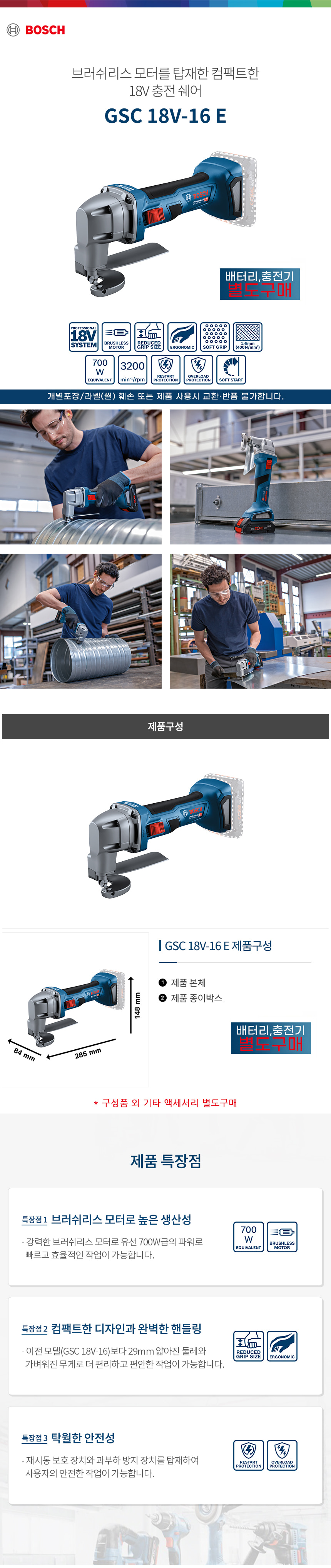 보쉬 GSC 18V-16 E 충전 쉐어 베어툴 06019263B0 금속 절단 컷팅