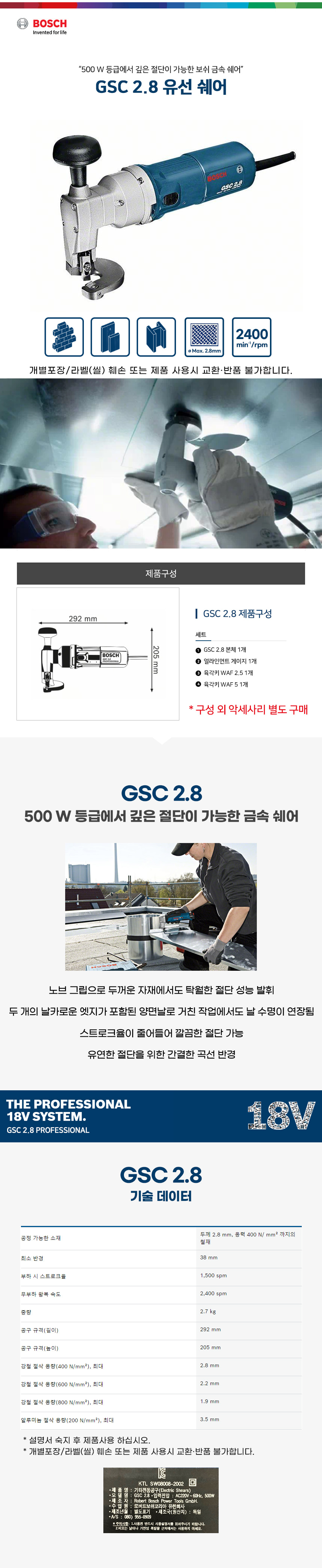 보쉬 GSC 2.8 유선 쉐어 금속 쉐어 철판 금속 절단 0601506160