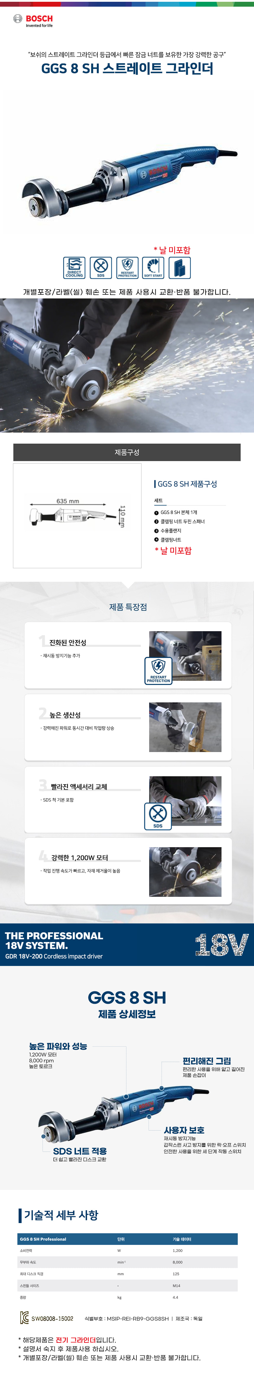보쉬 GGS 8 SH 유선 전기 스트레이트 그라인더 06012143B0
