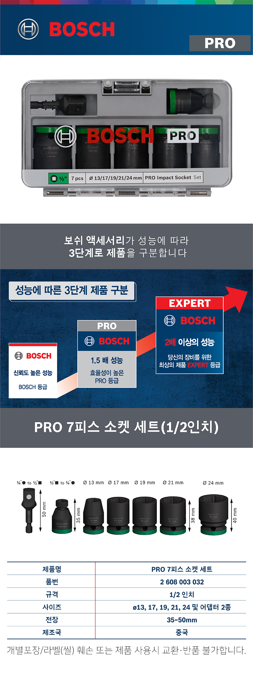 보쉬 PRO 7PCS 1/2인치 소켓 세트 2608003032 육각 임팩 렌치 복스 비트