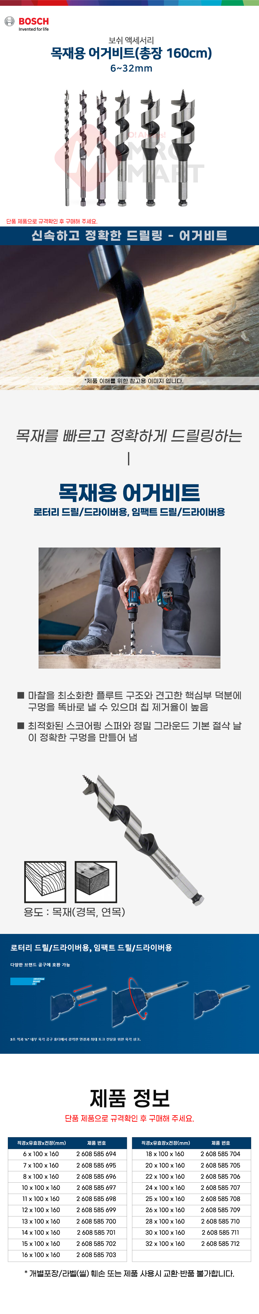보쉬 어거 비트 13x160mm 1개입 2608585700 목재용 드릴링 나사 송곳 비트 기리 목재 목공 천공 육각 샹크