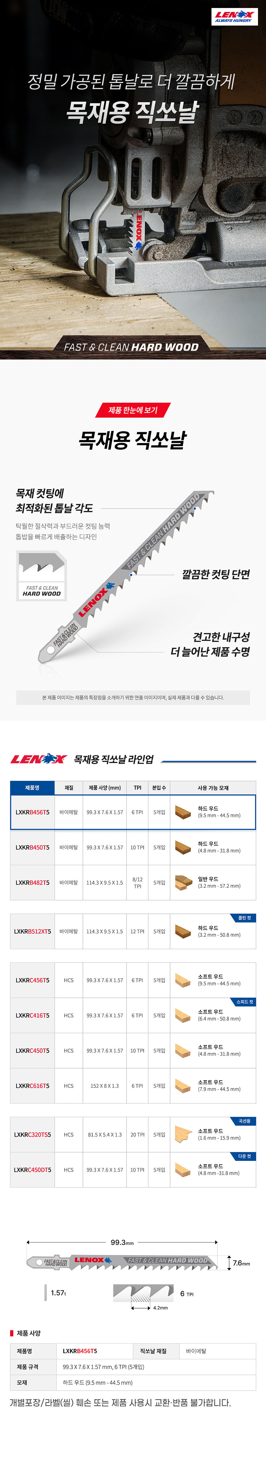레녹스 LXKRB456T5 직쏘날 5개입 99.3mm 6TPI 나무 목재 직소날 직소기 날 컷팅 절단 톱날