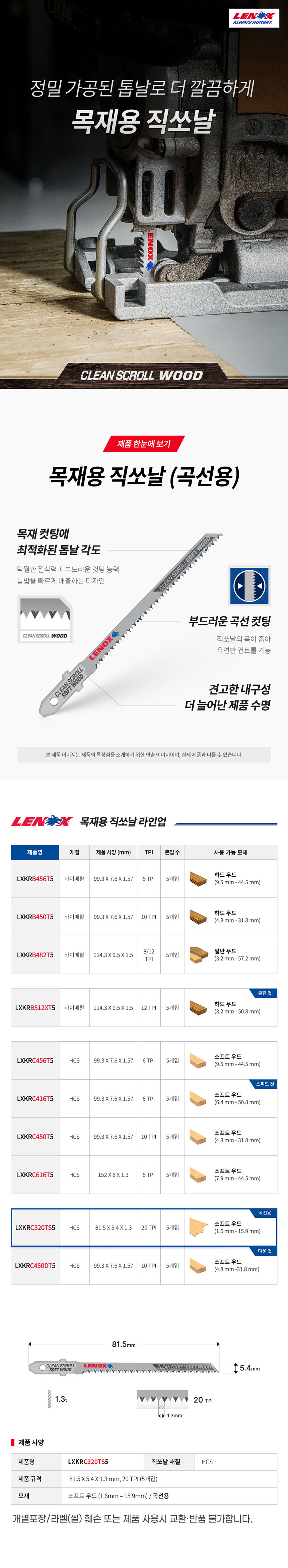 레녹스 LXKRC320TS5 직쏘날 5개입 81.5mm 20TPI 곡선용 나무 목재 직소날 직소기 날 컷팅 절단 톱날