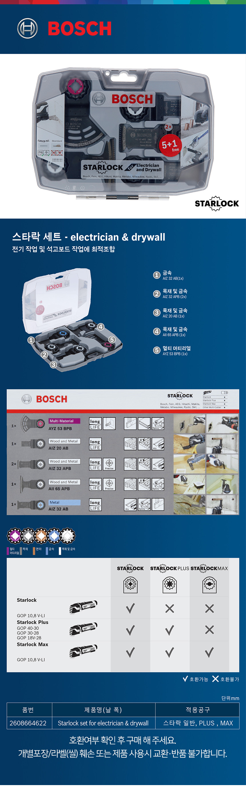 보쉬 Starlock 스타락 전기 석고보드용 세트 6종 2608664622 만능 컷터날 멀티날 교체 호환